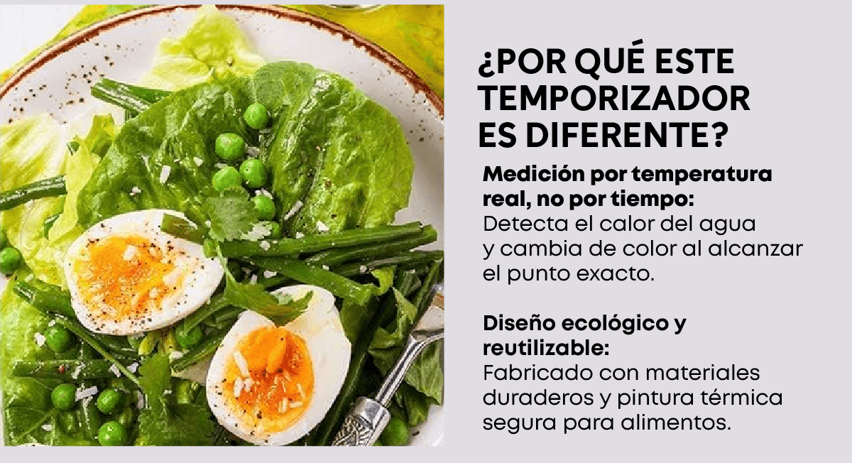 Solo colócalo dentro de la olla junto con los huevos y el agua. A medida que se calienta, el color cambia indicando el punto de cocción.